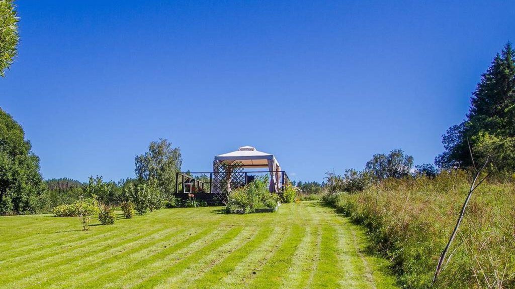 Stugan har plats för 3 personer med möjlighet att lägga till egna luftmadrasser på verandan. I stugan finns 2 sängar som kan staplas till en högre enkelsäng. Med en yta på 1600 m2 har du gott om utrymme att vistas utomhus.