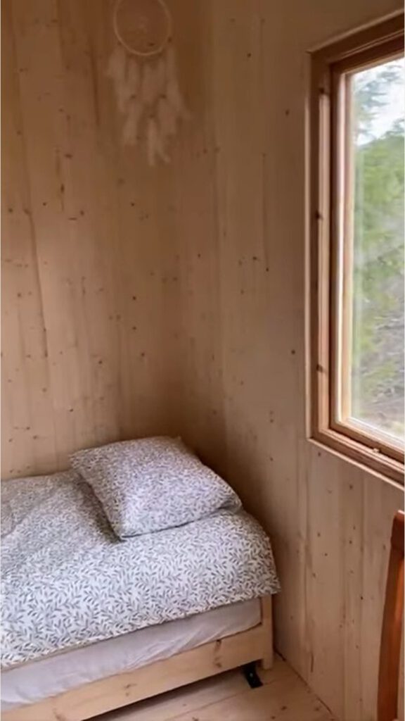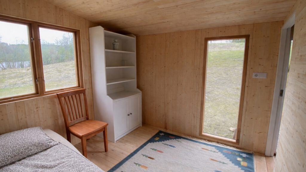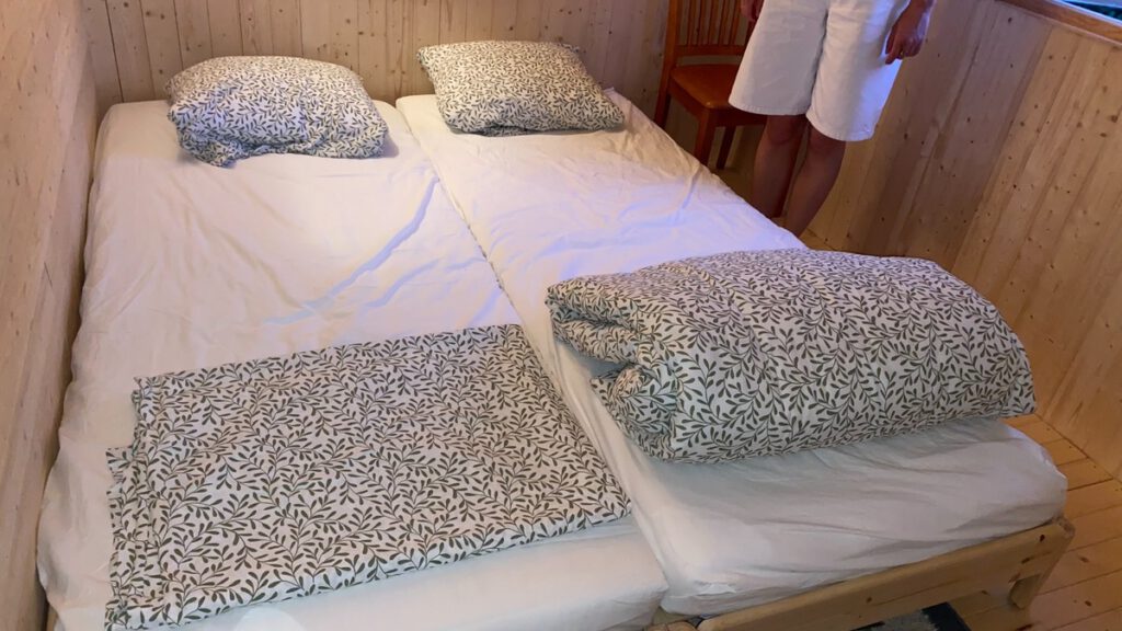 The stuga has 2 beds that can be stacked to form a higher single bed.